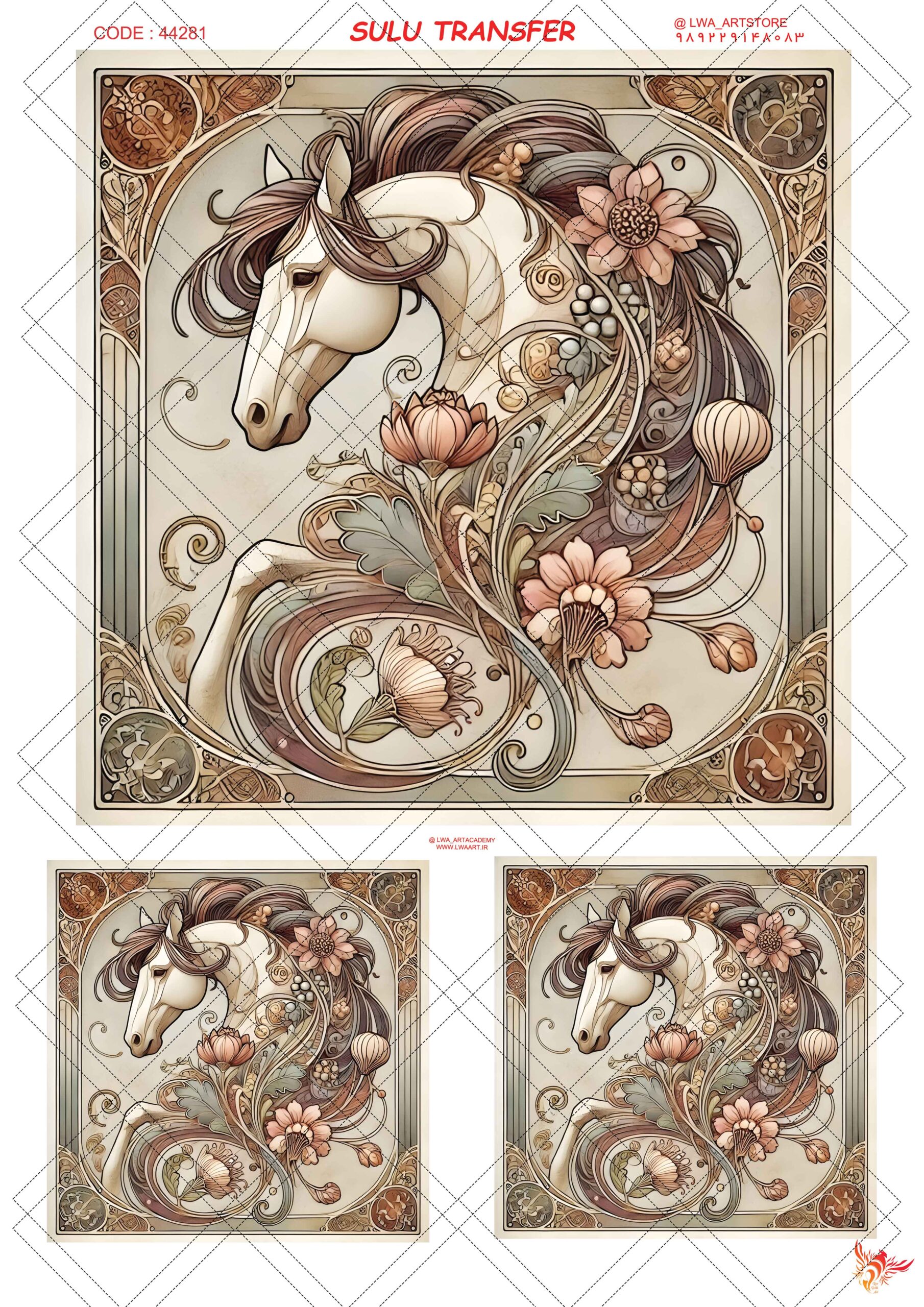 توضیحات این ترنسفرها به علت تنوع بالا و استفاده آسان و طرح های به روز امروزه بسیار پرطرفدار هستند.با استفاده از این طرح ها میتوایند تغییرات جزئی و یا تغییرات بزرگی رو انواع وسایل و روی انواع سطوح شیشه ، سرامیک ، چوب ، شمع ، پلی استر و… ایجاد کنید.کیفیت بالا و جزییات به کار رفته در تمامی طرح ها باعث میشود نتیجه کار شما فوق العاده حرفه ای و بی نقص باشد.به علت تنوع بالا و قیمت مناسب این ورق ها حتی اگر مهارت بالایی در نقاشی و ایجاد طرح های ظریف رو نداشته باشید ، میتوانید طرح مورد نظرتون رو خیلی راحت روی کار ایجاد کنید. نحوه استفاده در ابتدا دور طرح مورد نظز را برش دهید ، بعد از آن ورق را داخل آب ولرم قرار دهید و چند دقیقه صبر کنید. بعد از مدت کوتاهی طلق از برگه زیرین جدا شده و شما میتوانید به راحتی طرح را بر روی هر سطحی بچسبانید ، روش دیگر چسباندن این طرح این است که بعد از حدود دو دقیقه ، کاغذ را بردارید و از قسمت طلقی روی سطح قرار بدید ، بعد از چسبیدن طلق ، کاغذ پشت را از طرح جدا کنید. بعد از قرار گرفتن طرح بر روی سطوح با دستمال خشک (از دستمال مرطوب استفاده نکنید)روی طرح کشیده که هوا و حباب های داخل آن گرفته شود. این ورق ها به چسب احتیاج ندارند ولی برای اطمینان بیشتر میتوانید از وارنیش پایه آب استفاده نموده و تثبیت کنید. برای اینکه طرحتون واضح تر دیده شود و زیبایی خود را کاملا نمایش دهد بهتر است روی سطوح سفید و یا روشن از این ورق ها استفاده شود که برای اینکار میتونید سطح کار را با رنگ سفید اکرلیک رنگ نمایید.